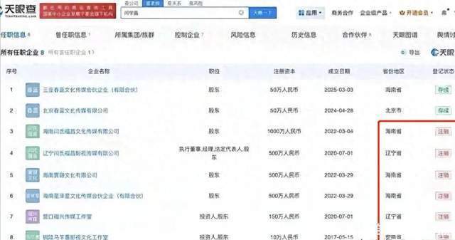 而且博主还挖得更深,发现闫学晶名下及关联的企业曾多达八家,其中大部分都是成立一两年就注销了。