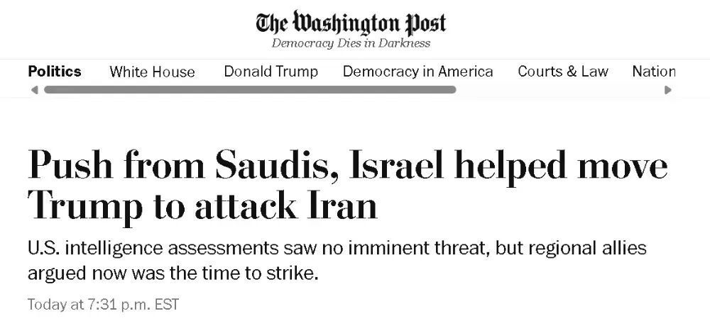 比如,《以色列时报》就在1日的一篇报道中用大标题突出强调说,是沙特游说特朗普攻打的伊朗。而且,同样值得注意的是,这家以色列媒体在此文中,还省略了《华盛顿邮报》原文中提到的内塔尼亚胡也游说特朗普攻打伊朗的部分。